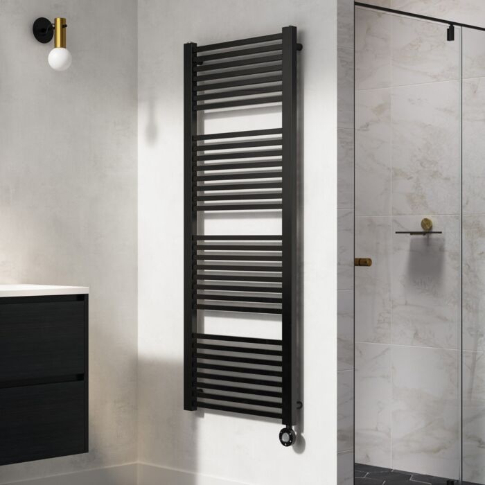 Instamat Rim elektrische handdoekradiator met zwarte thermostaat 170x60cm soft zwart 1000W