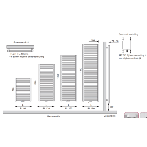 De Instamat Rondo Lux radiator biedt diverse aansluitcombinaties, zodat je altijd een geschikte optie hebt voor jouw badkamer: