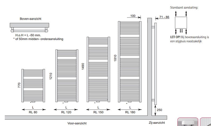 - Warmteafgifte: 800 W (bij 20°C - 75/65)