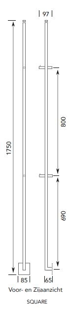 Instamat Square Elektrische Handdoekradiator 175cm hoog 29W gepolijst RVS