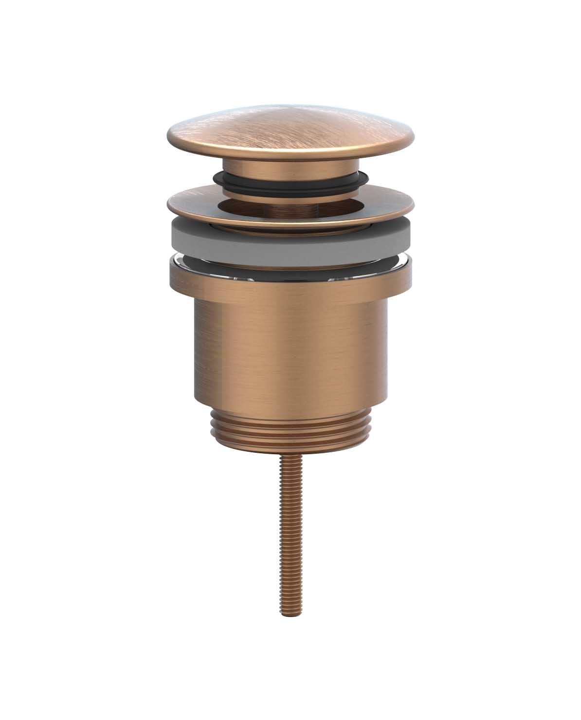De IVY afsluitbare klikplug in Geborsteld Mat Koper PVD combineert modern design met een vleugje luxe. De Matte glansgraad voegt een chique uitstraling toe aan elke badkamerinterieur.