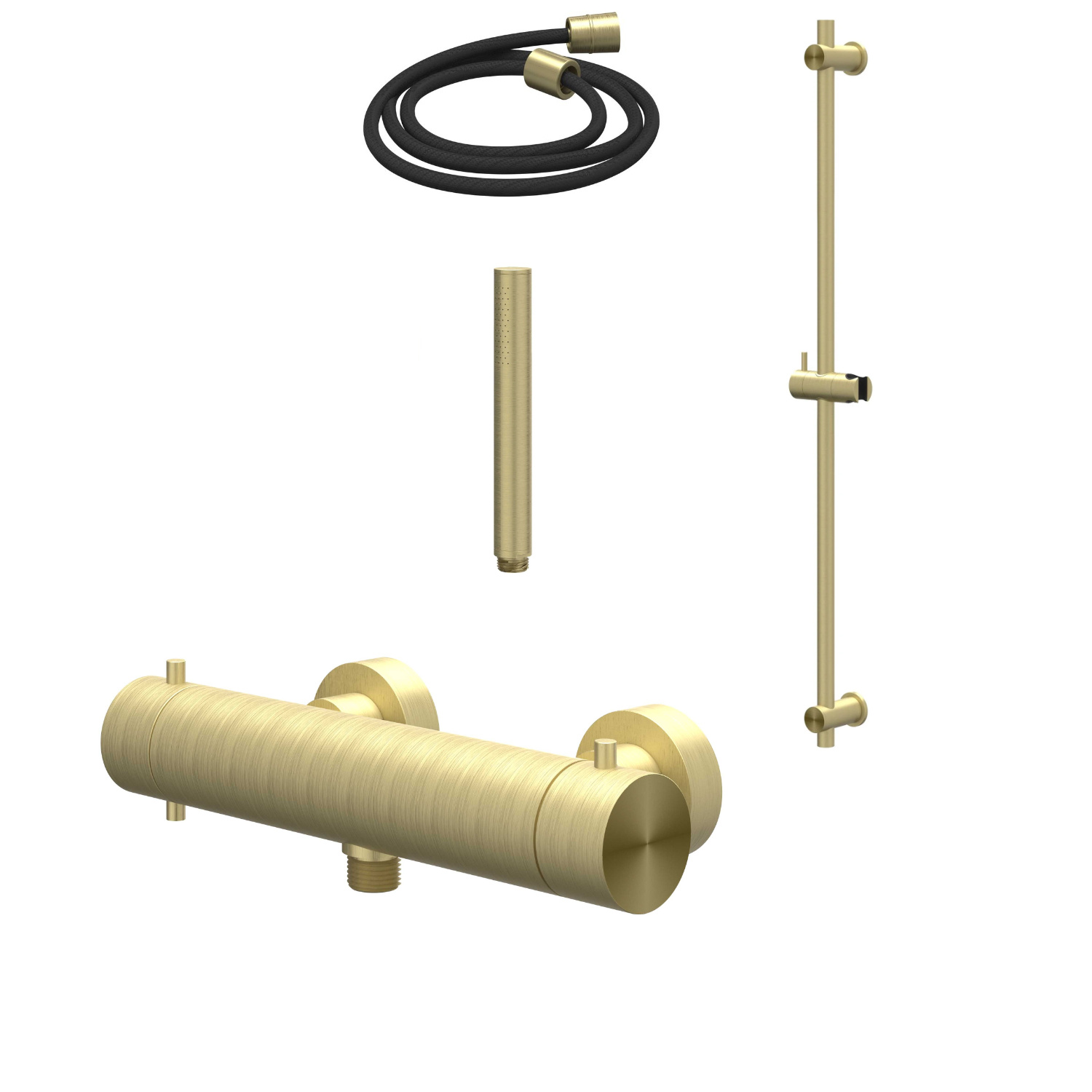 De IVY Concord glijstangset combineert een modern en luxueus design dat een verfijnde uitstraling aan uw badkamer geeft. Het Geborsteld Mat Goud PVD afwerking voegt een vleugje elegantie toe en past perfect bij zowel moderne als tijdloze badkamerstijlen.