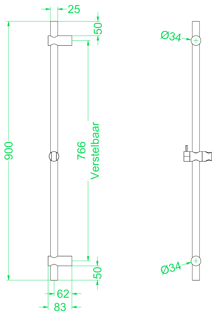 - + Bevestigingspunten zijn in hoogte verstelbaar