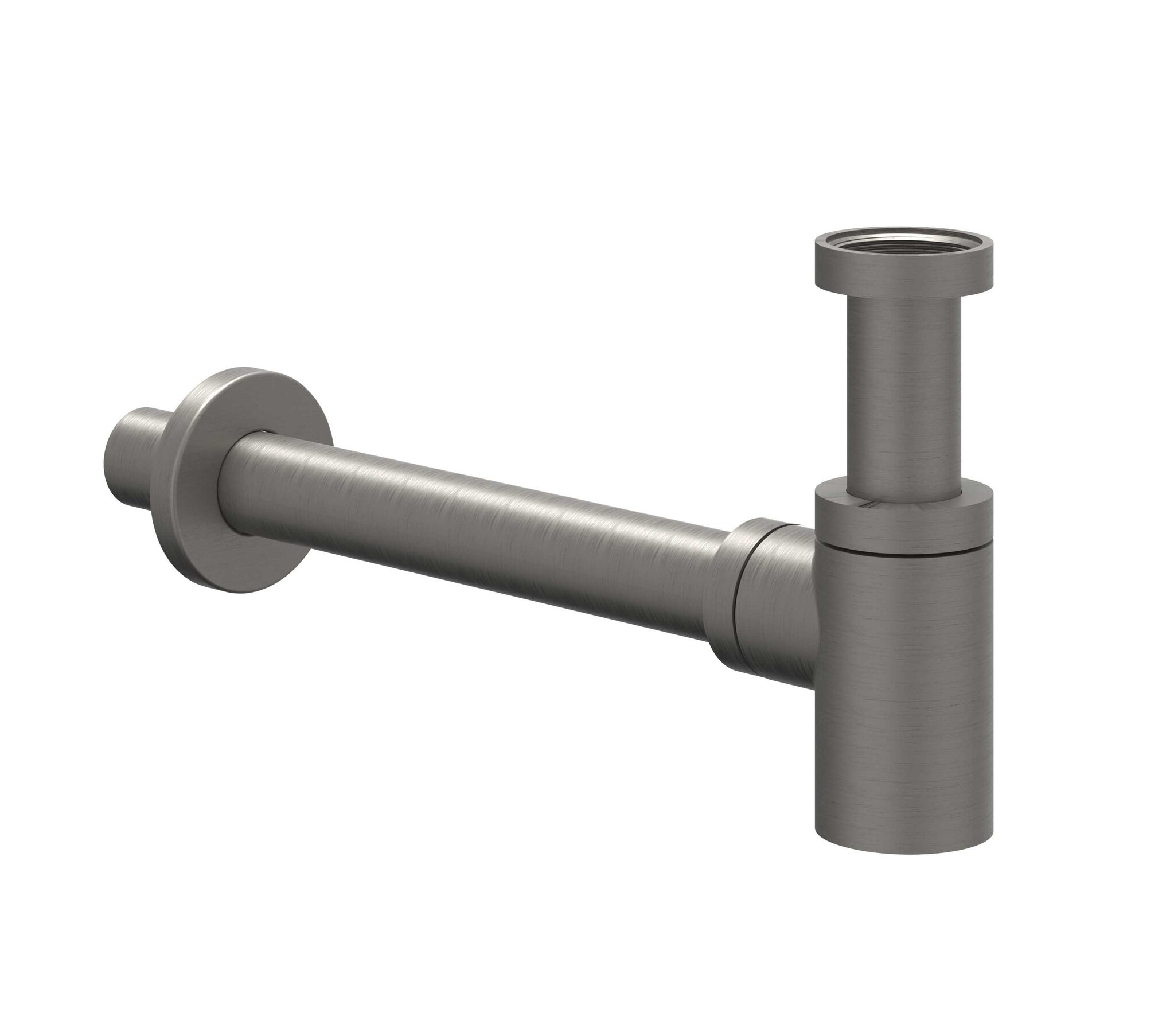 De IVY design fonteinsifon in Geborsteld Metal Black PVD straalt een moderne en luxueuze uitstraling uit die elke badkamer direct een upgrade geeft. Het MatZwarte Metalen ontwerp voegt een eigentijdse flair toe aan de ruimte, terwijl de Geborstelde afwerking zorgt voor een luxe uitstraling.
