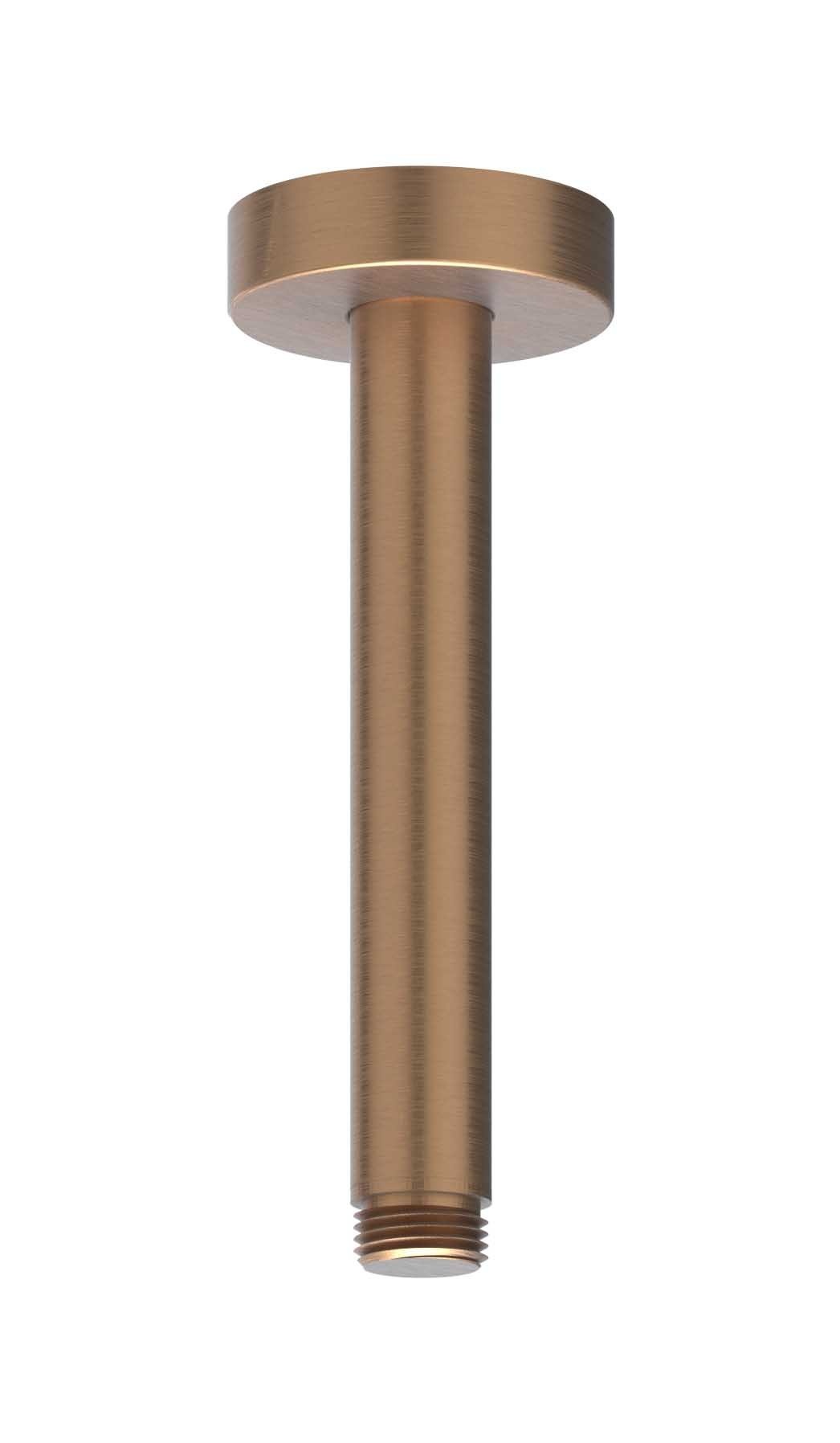 De IVY plafondbuis in 15cm lengte straalt een modern en luxueus design uit dat moeiteloos elegantie toevoegt aan elke badkamer. Met de Geborsteld Mat Koper PVD afwerking heeft deze accessoire een stijlvolle uitstraling die een vleugje verfijning toevoegt aan de ruimte.