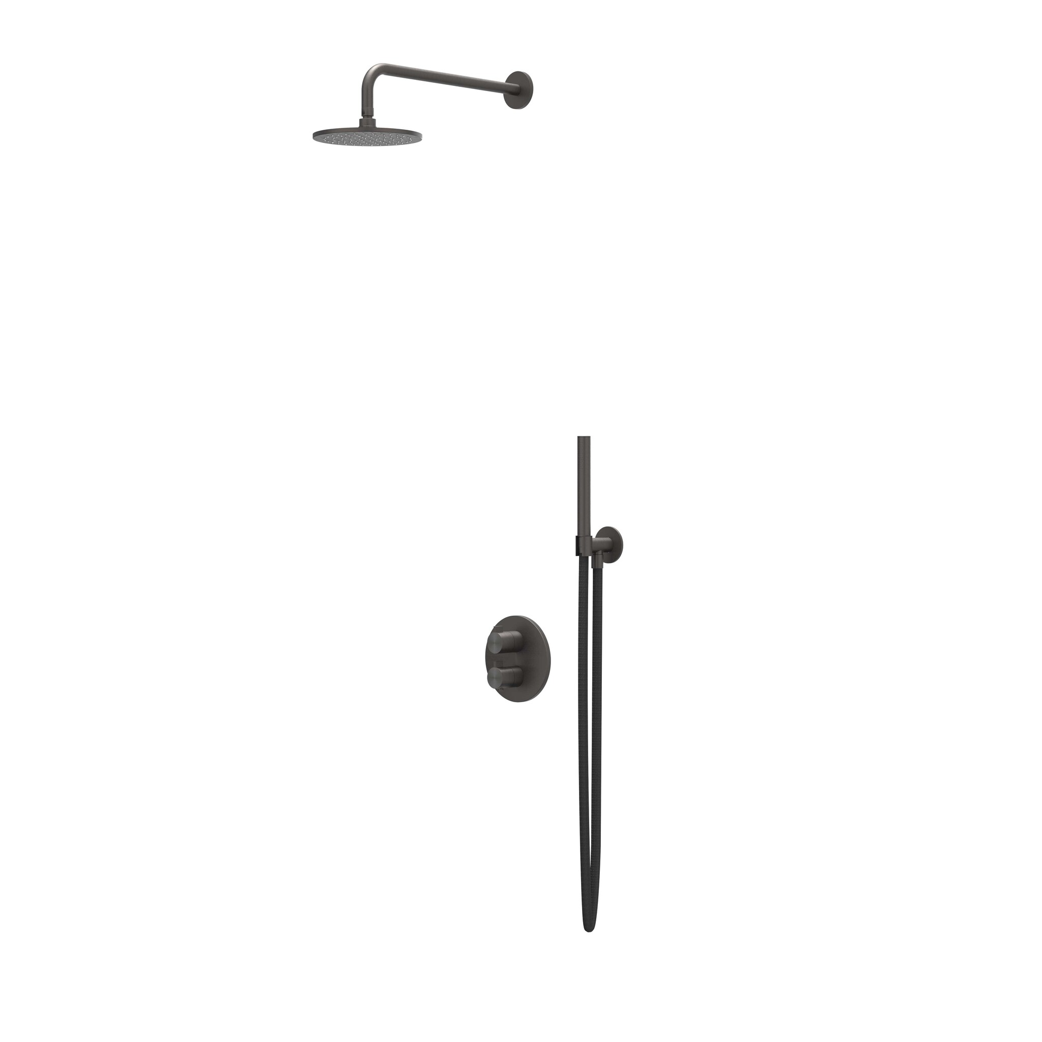 IVY Tribe inbouw regendoucheset 2-weg - Geborsteld carbon Black pvd - 30cm - 0,8 cm - rond - 30cm plafondbuis - staafhanddouche - wandhouder