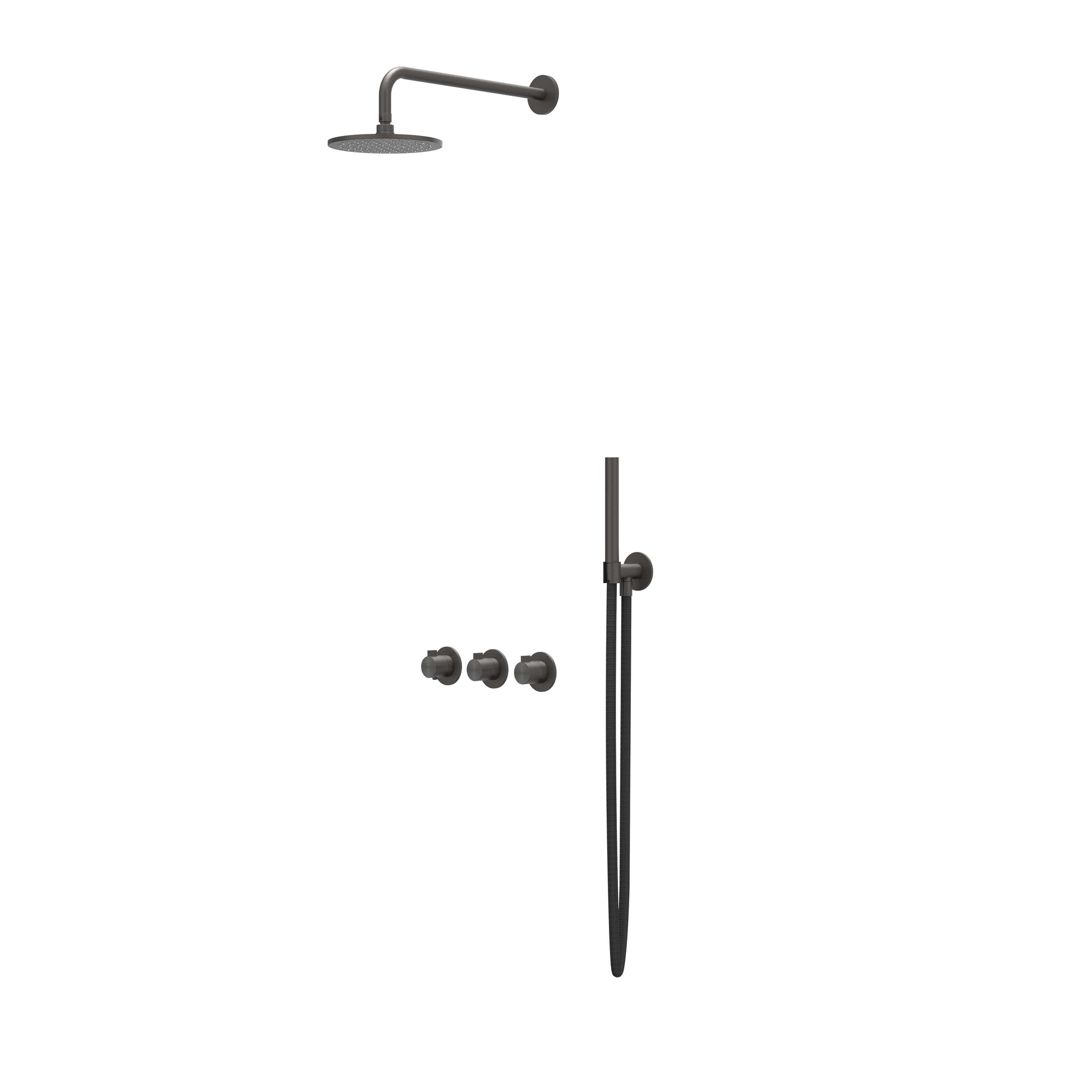 IVY Tribe Inbouw Regendoucheset Symmetry 2 Stopkranen - 20cm Plafondbuis - 20cm Medium Hoofddouche - Glijstang - Staafhanddouche - RVS316 Geborsteld Carbon Black PVD