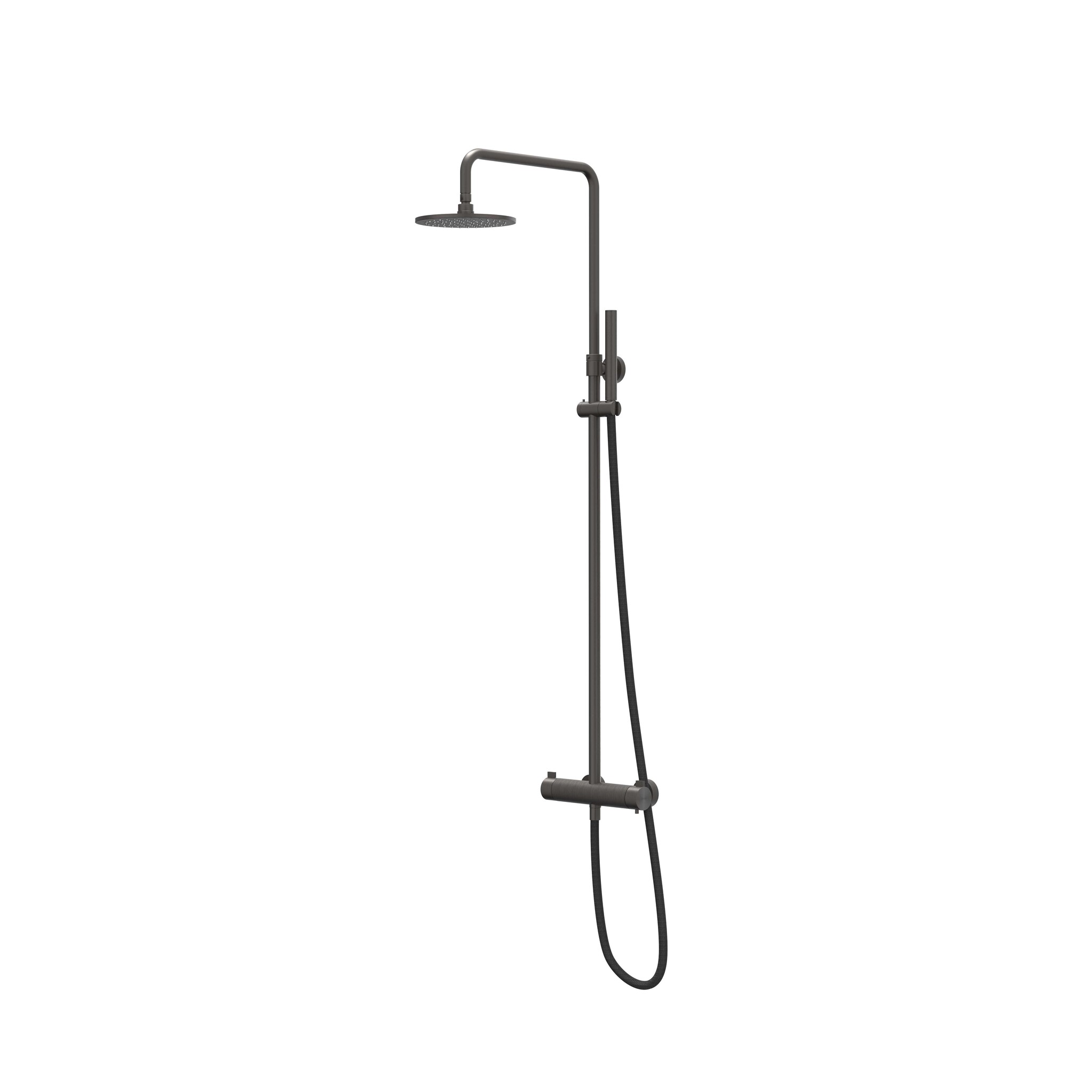 IVY Tribe opbouw regendoucheset - Geborsteld carbon Black pvd - 25cm - 0,8 cm - staafhanddouche