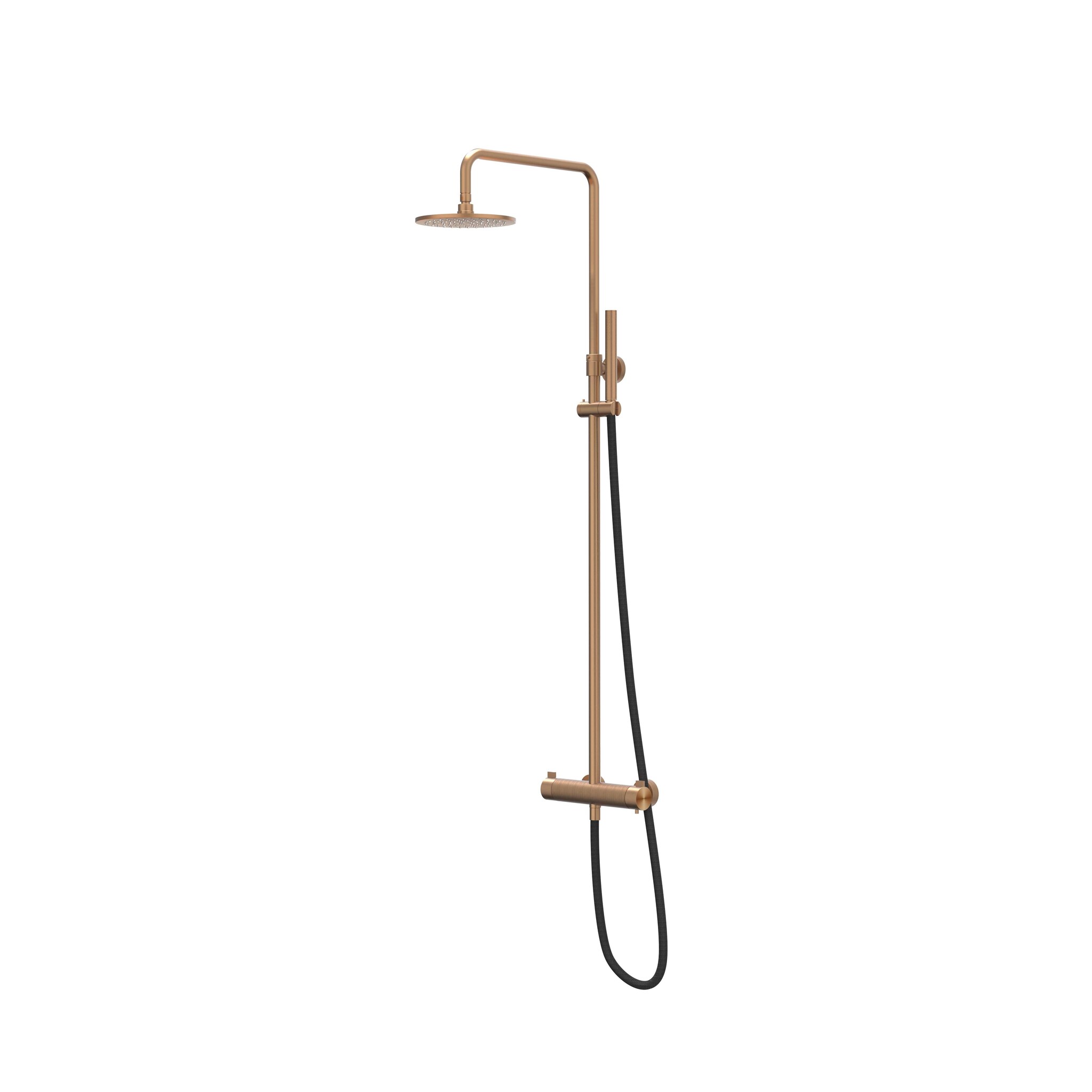 IVY Tribe opbouw regendoucheset - Geborsteld Mat Koper pvd - 30cm - 0,8 cm - staafhanddouche