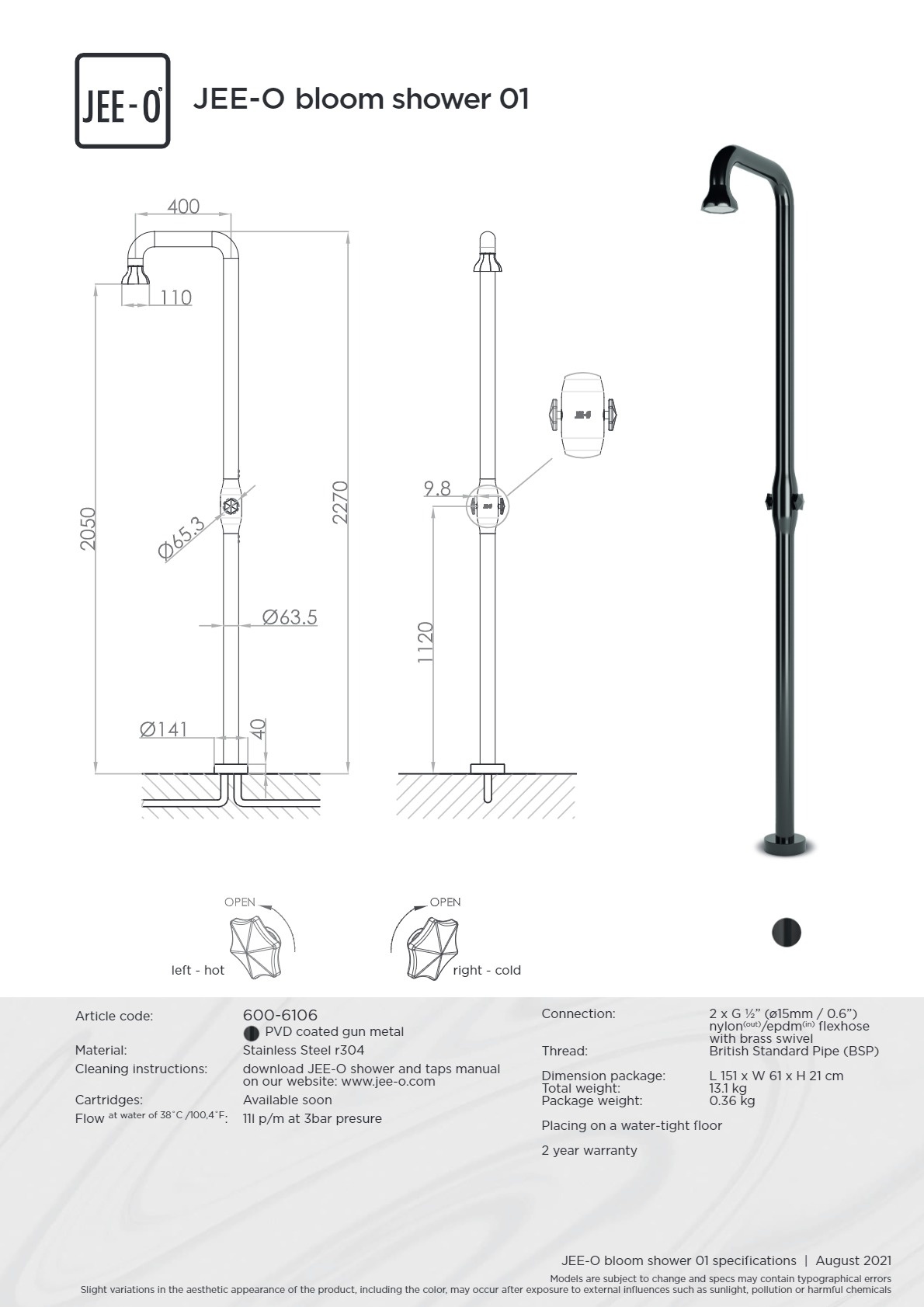 De JEE-O Bloom vrijstaande douche gun metal is niet alleen een functionele toevoeging aan je badkamer, maar ook een stijlvolle. Geniet van een ontspannende douche-ervaring met deze prachtige vrijstaande douche.