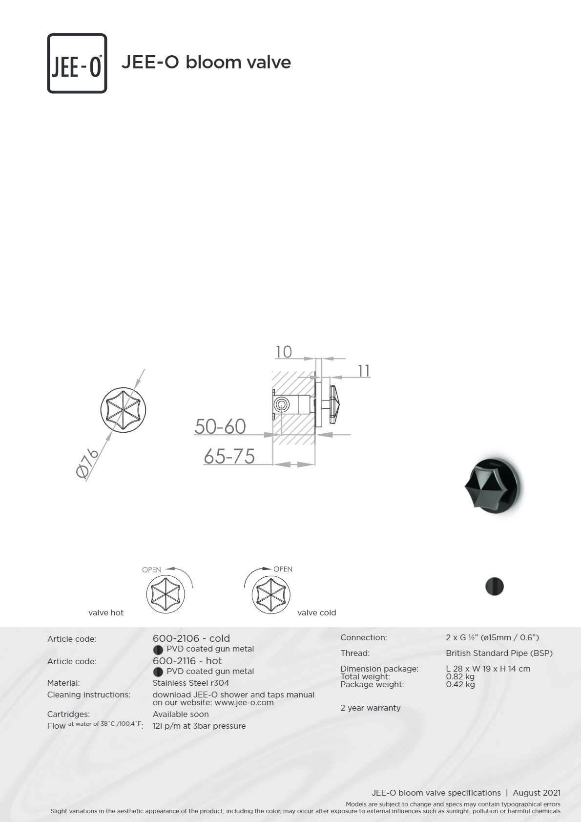 Offerte aanvraag voor JEE-O Bloom Wand mengkraan met inbouwdeel - 600-2116 | Koud