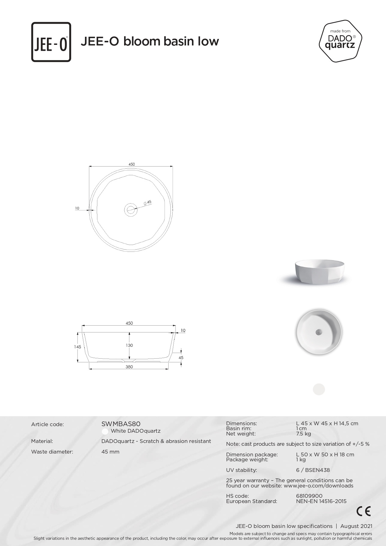 De JEE-O Bloom wastafel opzetkom is eenvoudig te monteren op een wastafelblad of meubel naar keuze. Hierdoor kun je de wastafel naar jouw persoonlijke smaak en ruimtelijke indeling aanpassen.