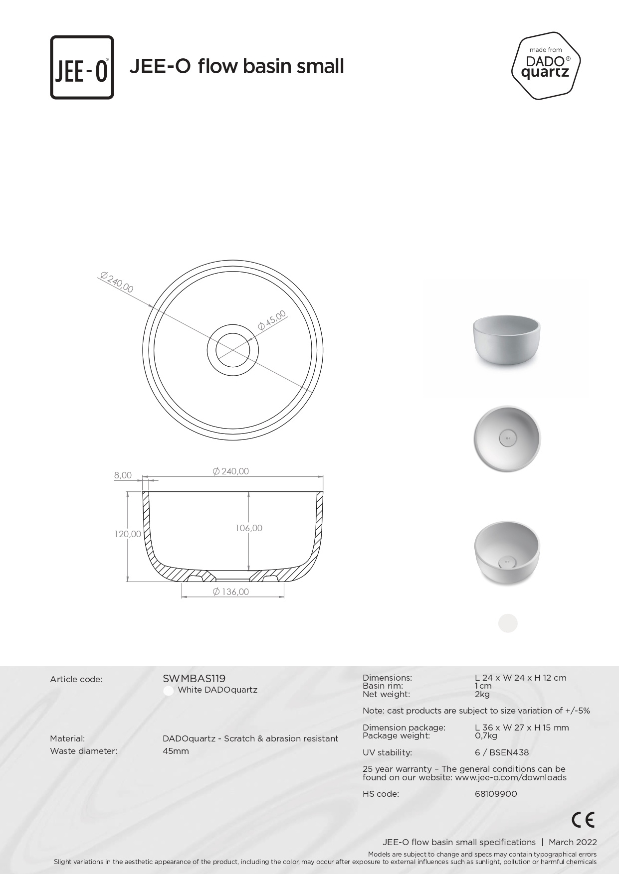 De JEE-O Flow fontein opzetkom is gemaakt van hoogwaardig DADO Quartz materiaal, wat zorgt voor duurzaamheid en een lange levensduur. De combinatie van mat wit aan de binnenkant en terra roze aan de buitenkant creëert een elegante en stijlvolle uitstraling.