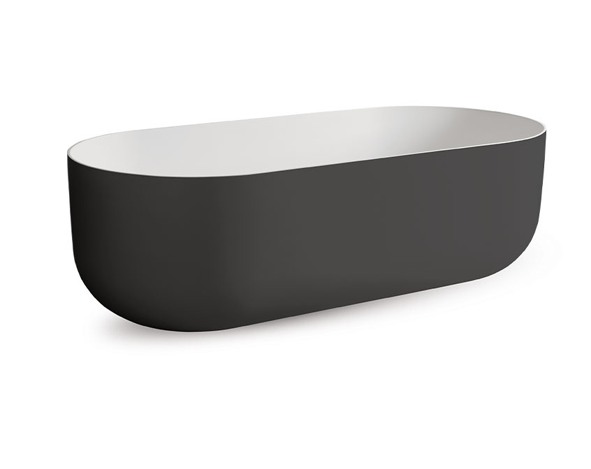 Het JEE-O Flow bad is gemaakt van duurzaam materiaal en heeft een onderhoudsvriendelijke afwerking. De buitenkant van het bad is mat zwart, wat een opvallend contrast vormt met de mat witte binnenkant. Het vrijstaande design geeft een ruimtelijk effect en past perfect in een moderne badkamer.