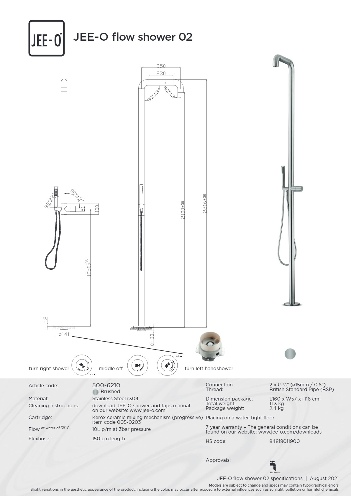 Offerte aanvraag voor JEE-O Flow Vrijstaande douchemengkraan met handdouche geborsteld rvs - 500-6210