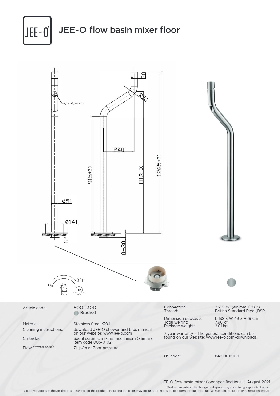 Offerte aanvraag voor JEE-O Flow Vrijstaande wastafelkraan geborsteld rvs - 500-1300