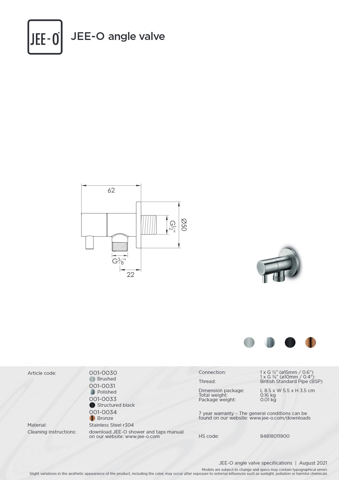 De JEE-O hoekstopkraan is een perfecte keuze voor wie op zoek is naar een stoere en moderne kraan voor in de badkamer. Bestel hem nu en geniet van een stijlvolle en functionele toevoeging aan jouw badkamer!