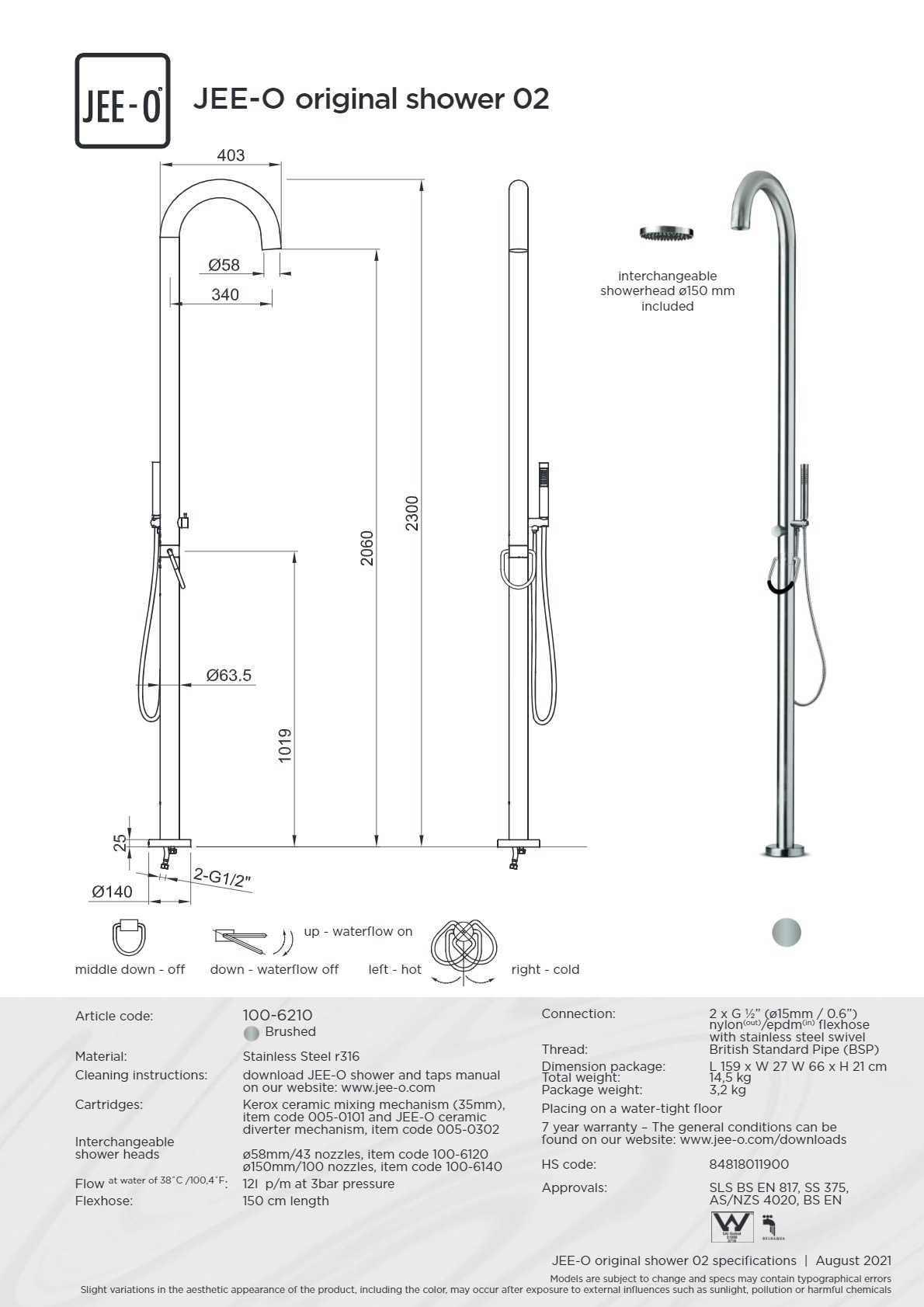 Offerte aanvraag voor JEE-O Orginal 02 Vrijstaande douche met éénngreepsmengkraan en handdouche 100-6210 | Met handdouche
