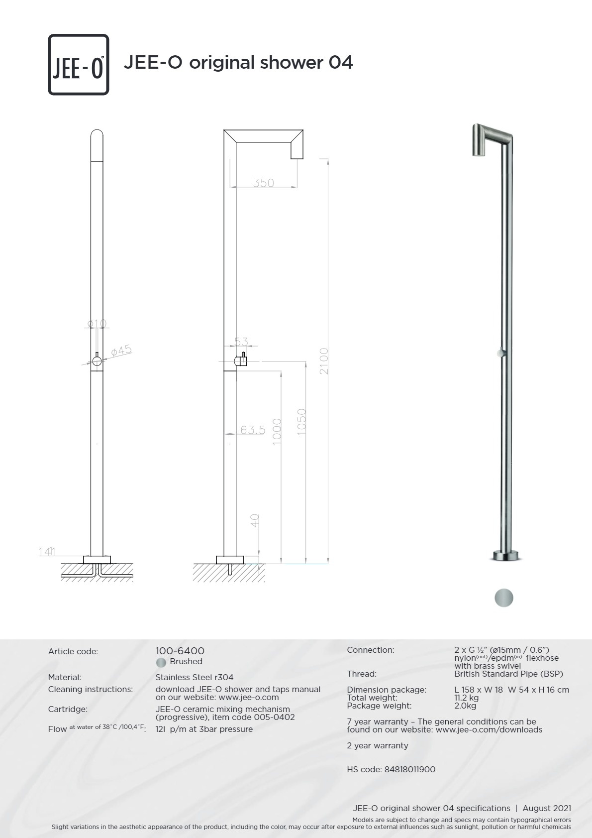 Offerte aanvraag voor JEE-O Orginal Vrijstaande douche met mengkraan met progressieve cartridge geborsteld rvs - 100-6400
