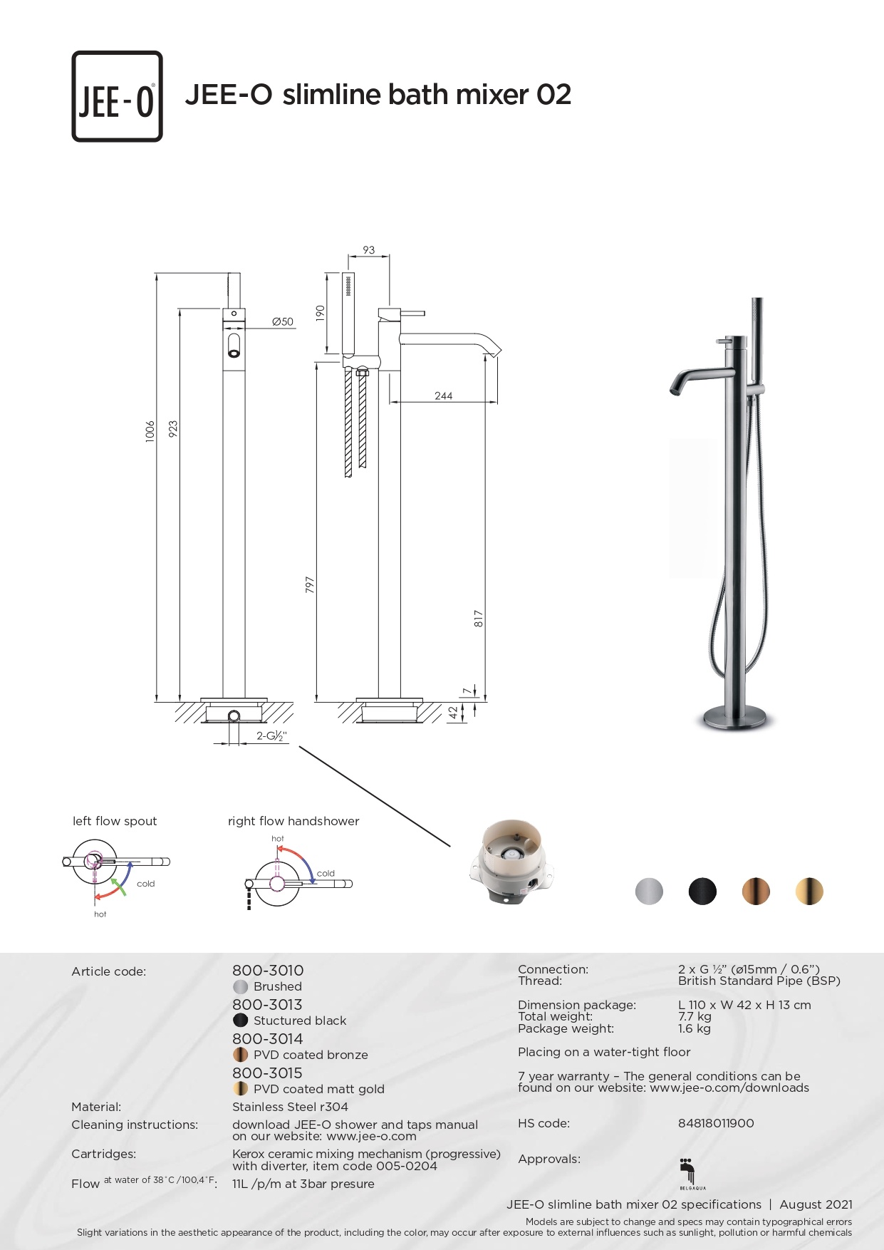 De JEE-O Slimline Vrijstaande badvuller met nhendel mengkraan, omsteller en handdouche is de perfecte aanvulling op elk modern bad. Het strakke, minimalistische ontwerp past bij elke badkamerstijl en biedt ultiem comfort en gebruiksgemak.