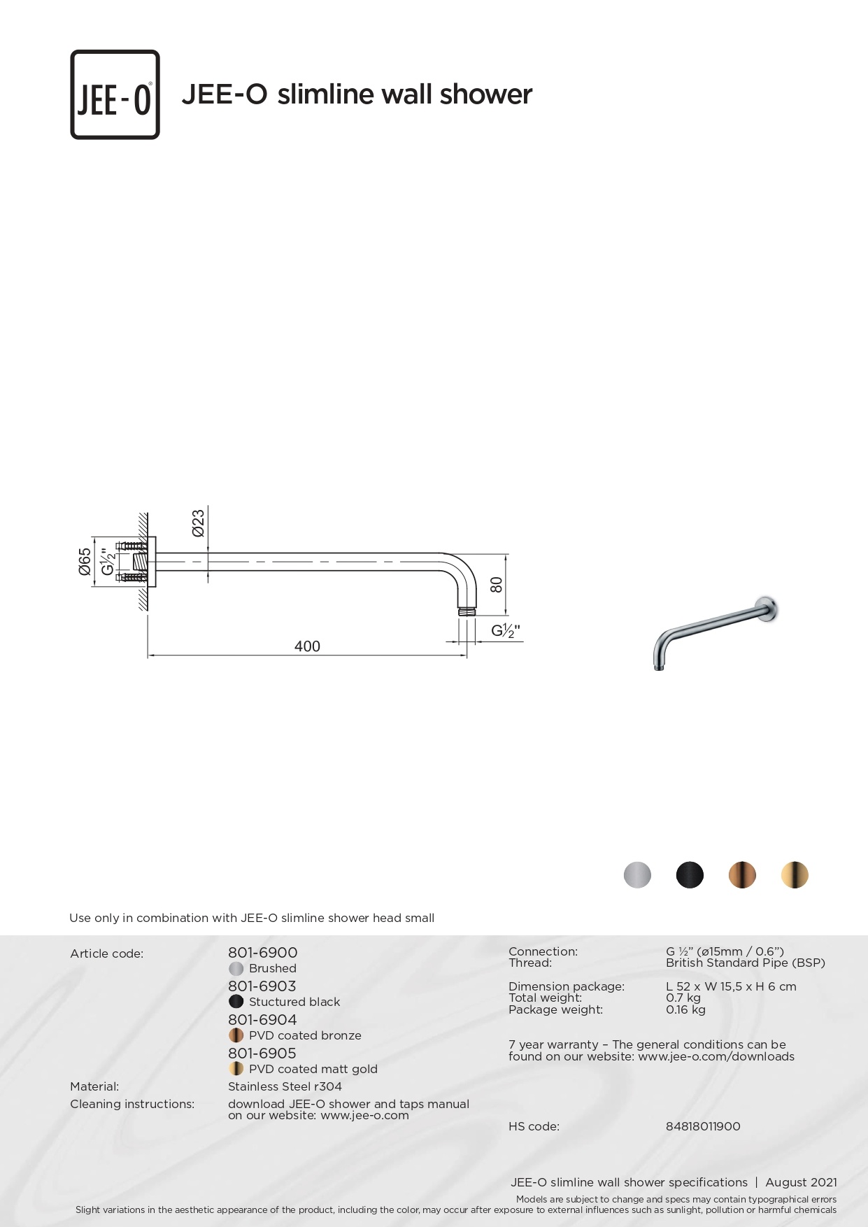 Offerte aanvraag voor JEE-O Slimline Wand douchekophouder - 801-6905 | mat goud