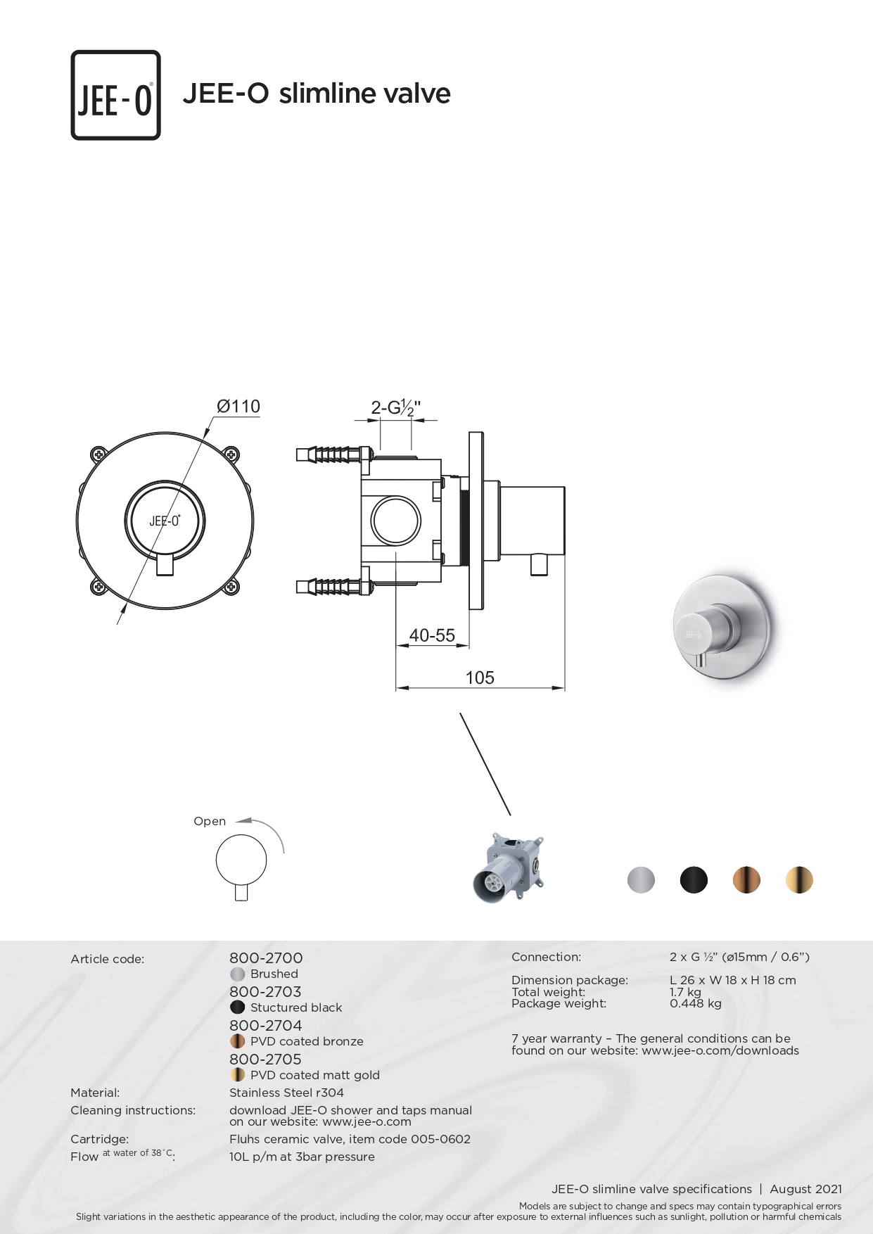 Bovendien heeft de JEE-O Slimline Wand inbouw stopkraan in mat goud een garantie van 2 jaar, zodat u zeker bent van uw aankoop.