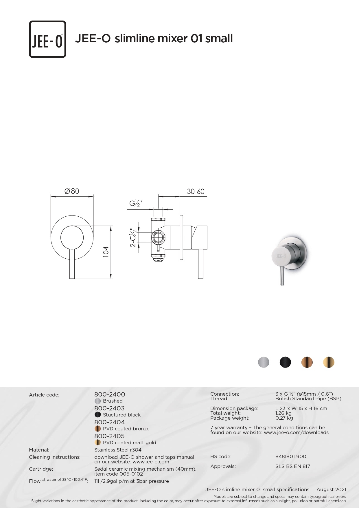 Offerte aanvraag voor JEE-O Slimline Wand Mengkraan Mixer 01 800-2403 | Mat Zwart