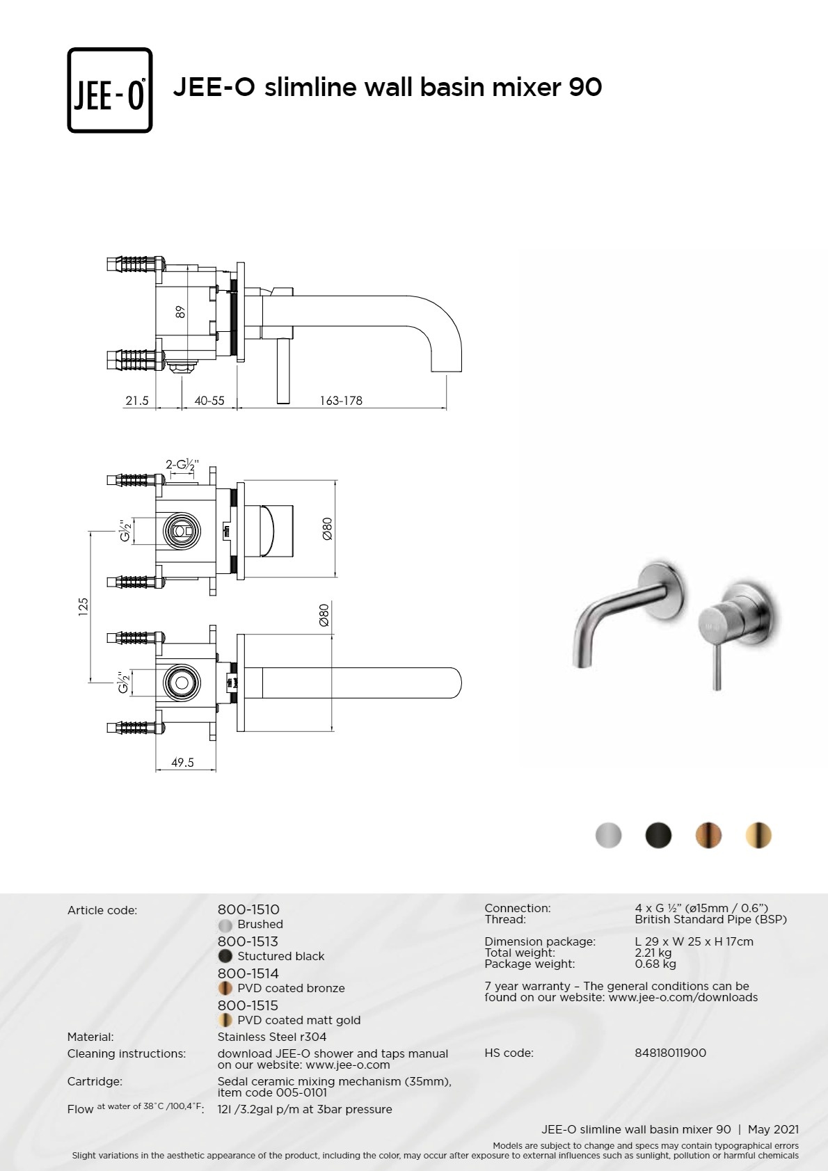 Offerte aanvraag voor JEE-O Slimline Wand Wastafelkraan 800-1514 | Brons | 90° Uitloop