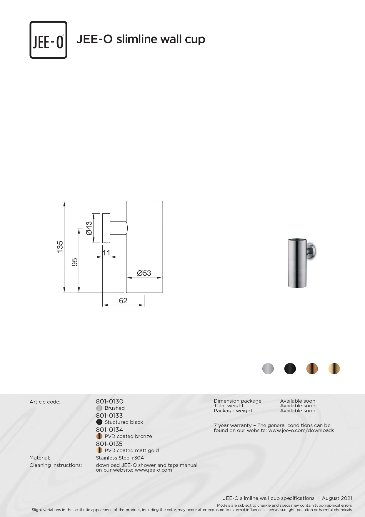 Offerte aanvraag voor JEE-O Slimline Wandhouder en beker - 801-0130 | Geborsteld RVS