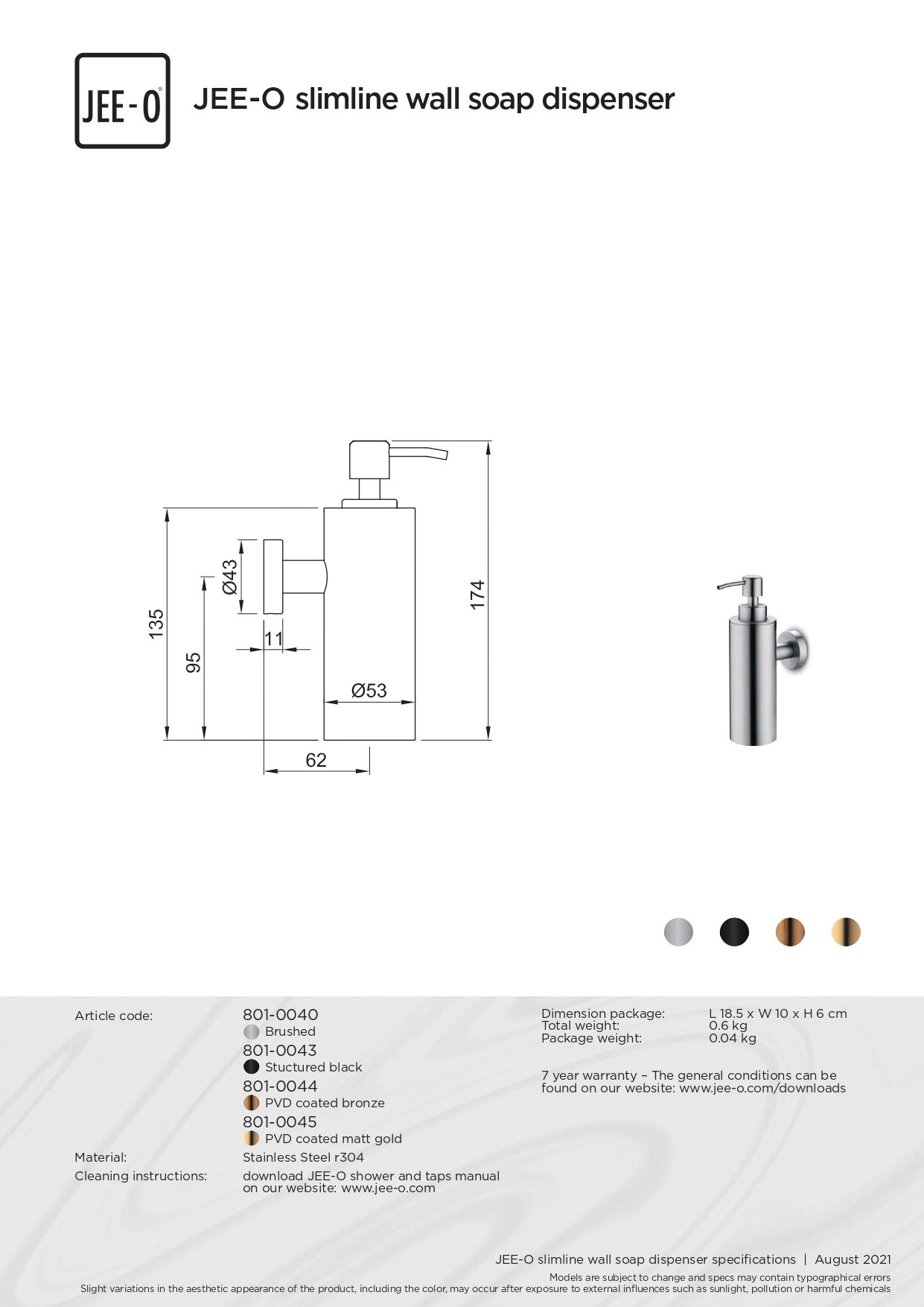 Offerte aanvraag voor JEE-O Slimline Zeepdispenser met wandhouder - 801-0040 | Geborsteld RVS