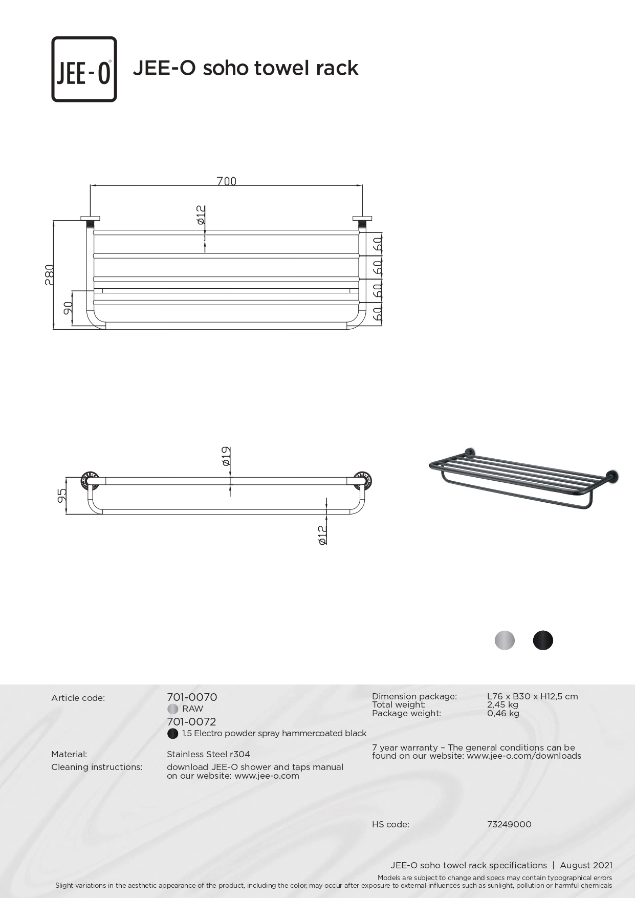 Offerte aanvraag voor JEE-O Soho Handdoekrek 70 cm - 701-0072 | Mat zwart | Handdoekrek