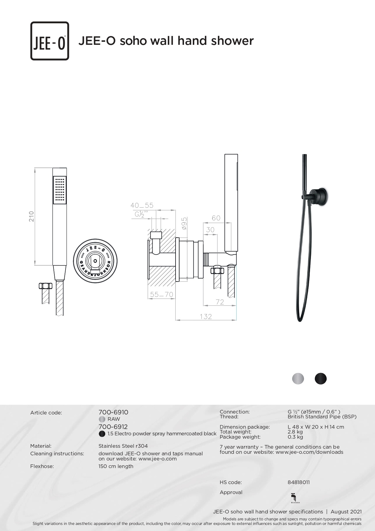 De JEE-O Soho Wand handdouche is gemakkelijk te reinigen en onderhouden. De handdouche is voorzien van een universele aansluiting en is eenvoudig te installeren. Met een diameter van 11cm is de handdouche groot genoeg om een aangename douche-ervaring te bieden, maar niet zo groot dat het onhandig wordt in gebruik.