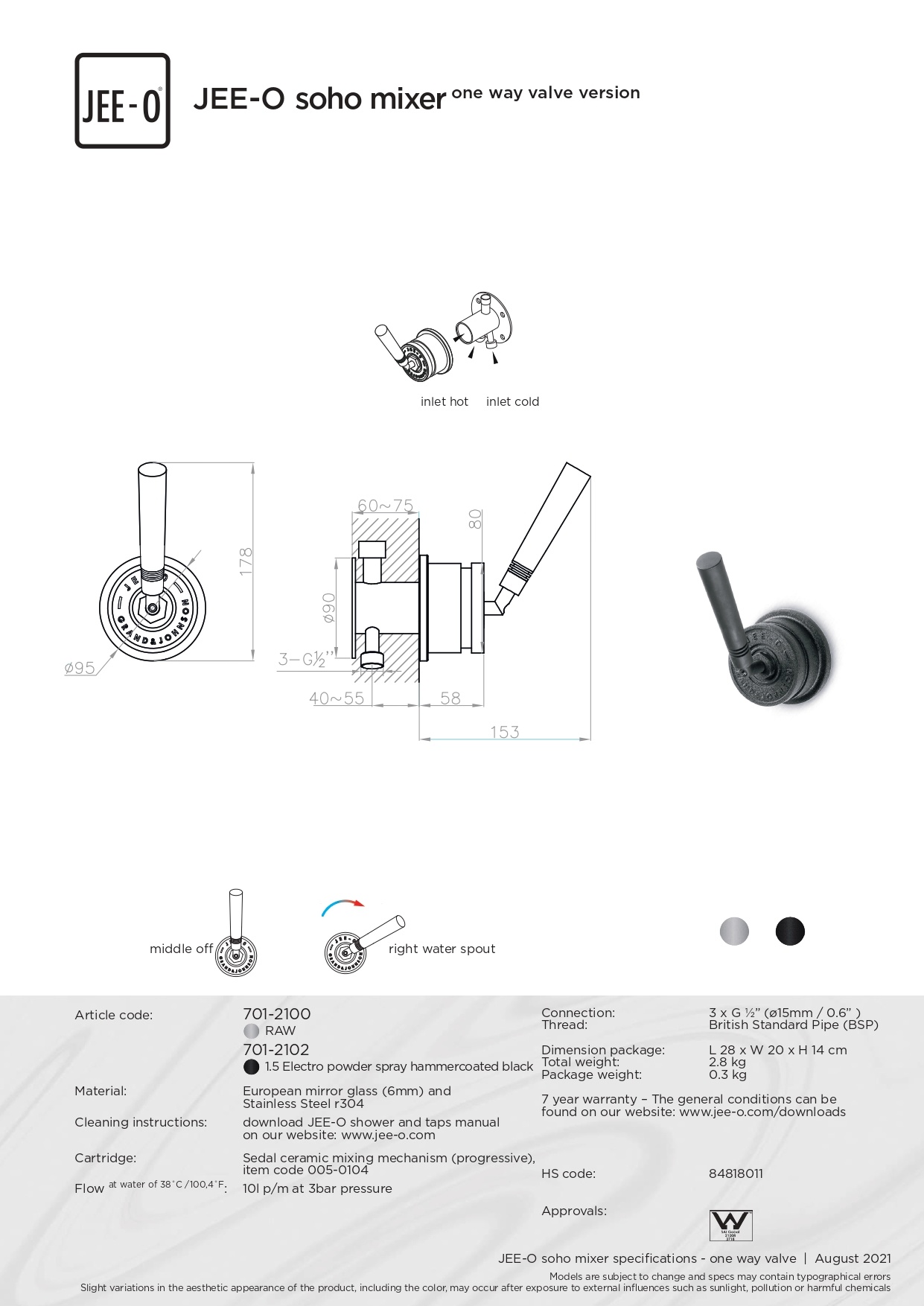 De progressieve cartridge zorgt ervoor dat je de temperatuur en waterstroom eenvoudig kunt regelen. De eenweg omsteller maakt het mogelijk om eenvoudig te wisselen tussen de verschillende wateruitgangen. Deze wand mengkraan past perfect bij een JEE-O wastafel en bad.