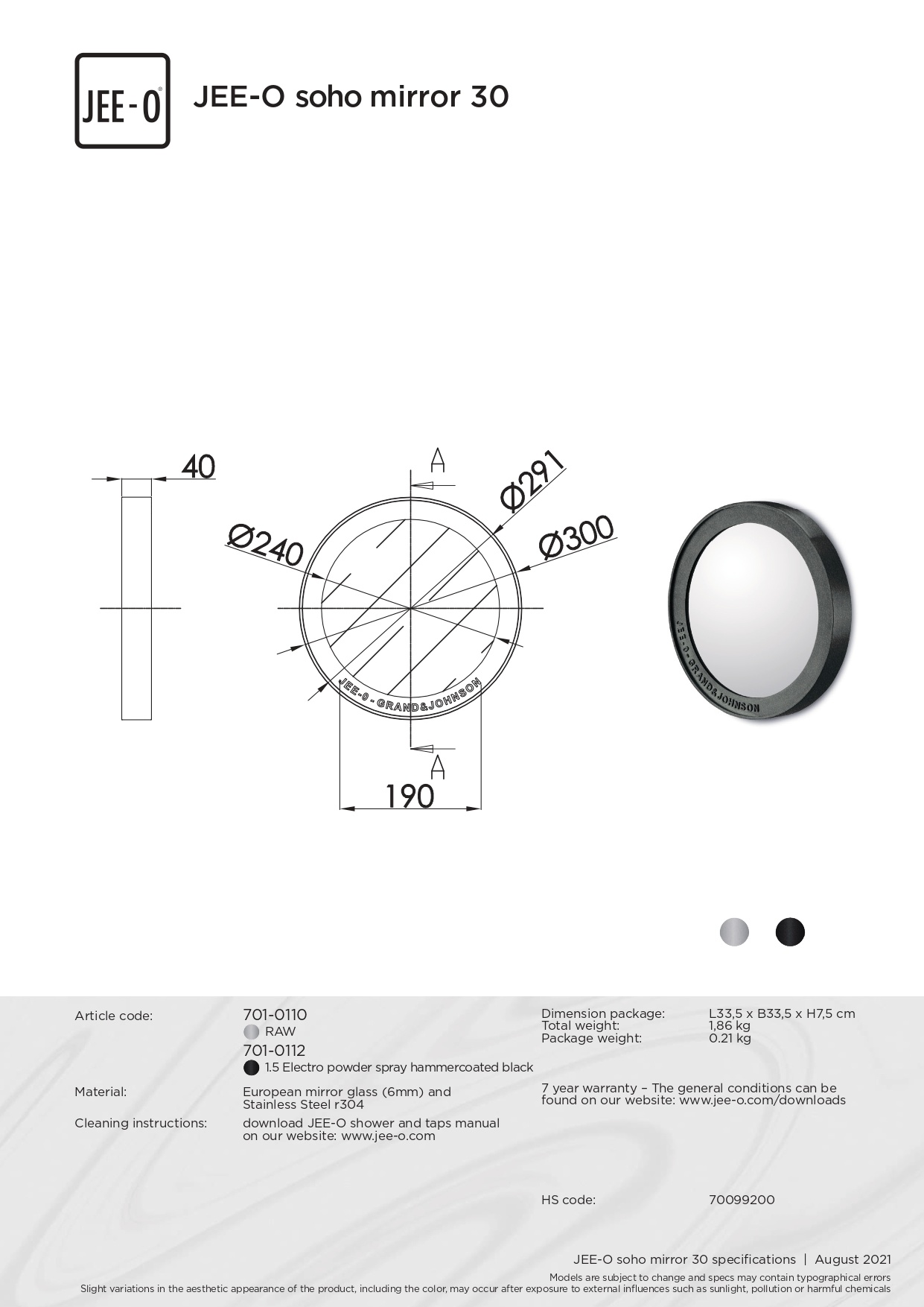 JEE-O Soho Spiegel 30 cm - 701-0112 | Mat zwart | Ø30 cm