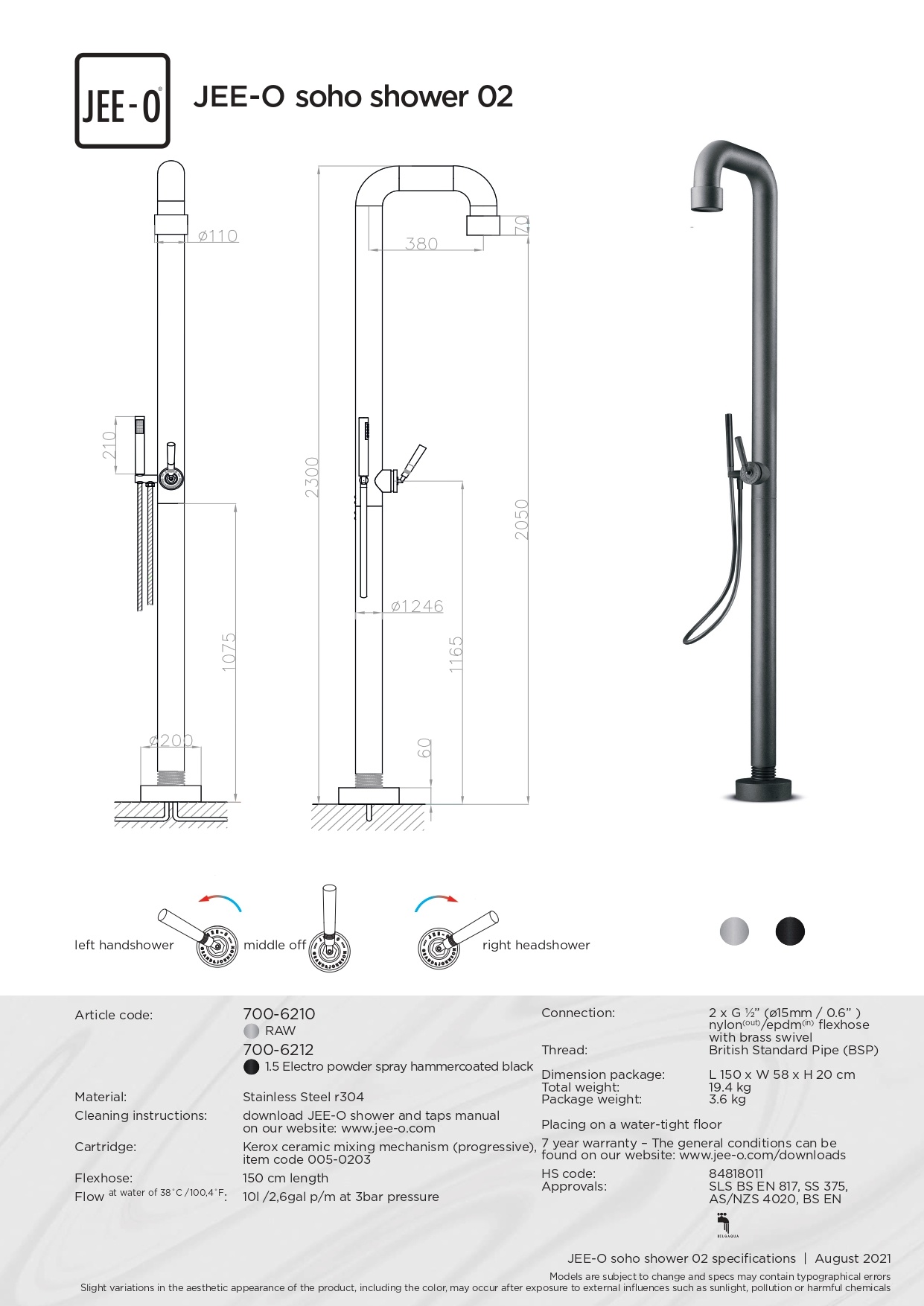 Offerte aanvraag voor JEE-O Soho Vrijstaande douche met éénngreepsmengkraan met omsteller cartridge en handdouche - 700-6212 | Met handdouche | Mat zwart
