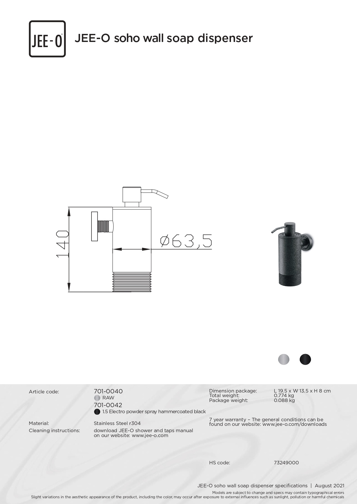 Offerte aanvraag voor JEE-O Soho Zeepdispenser met wandhouder - 701-0042 | Mat zwart | Wand