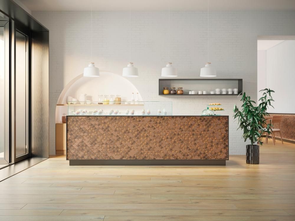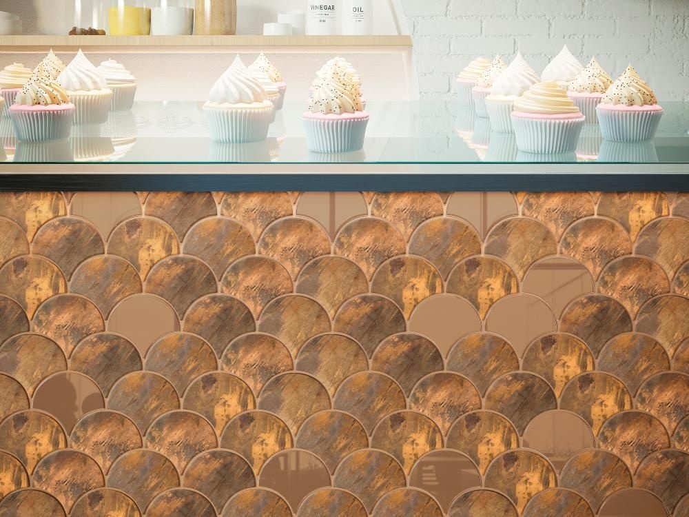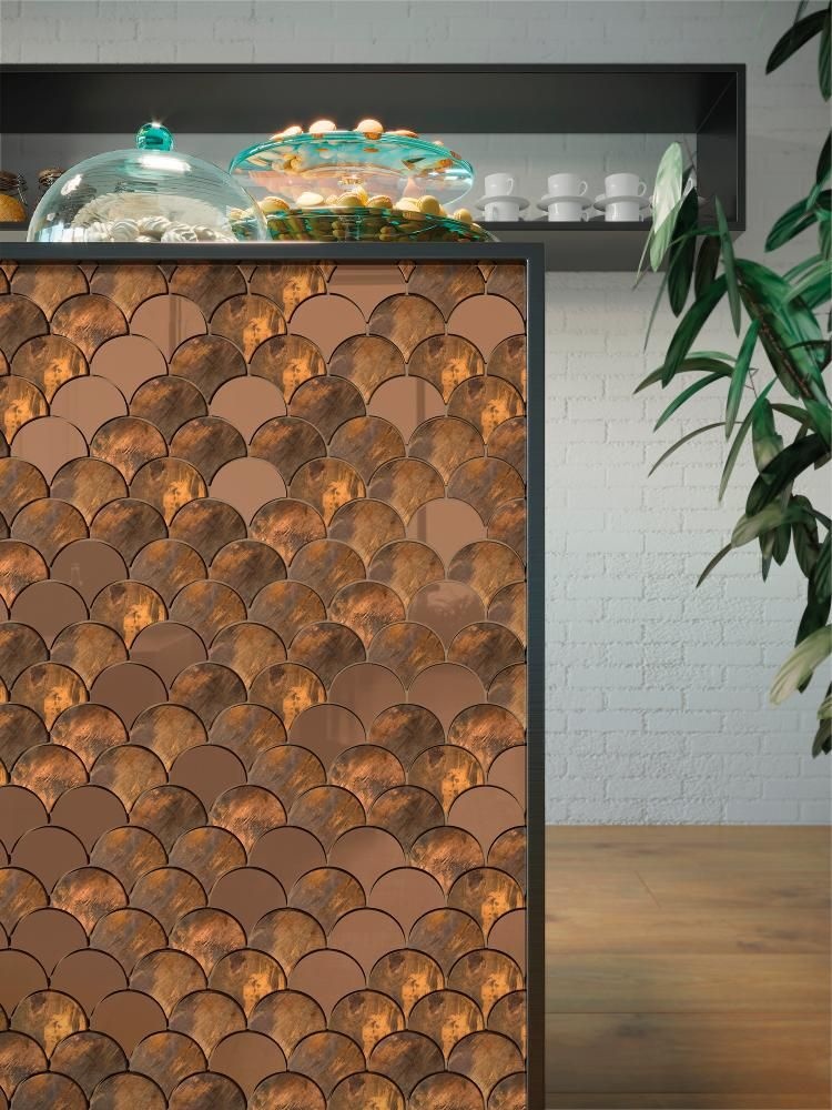 Glanzend koper mozaïek voor een unieke uitstraling