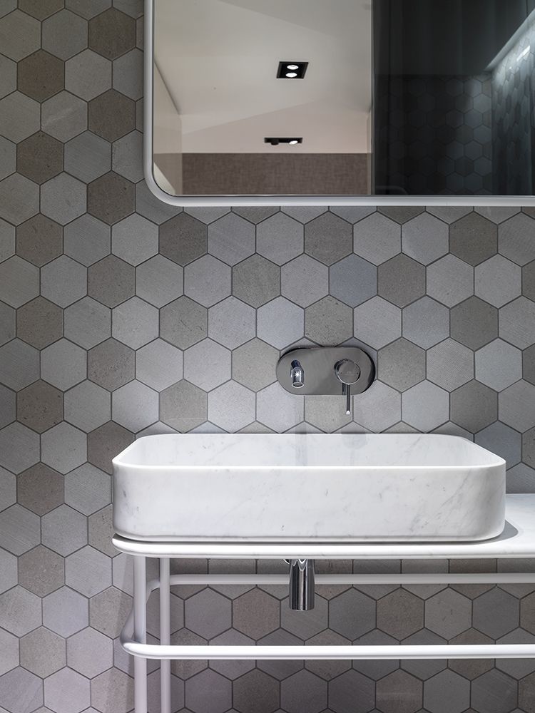 De prachtige grijze tinten van deze mozaïektegels brengen een gevoel van rust en harmonie in uw kamer. Het unieke hexagonale ontwerp voegt textuur en diepte toe, waardoor uw ruimte opvalt en indruk maakt op iedereen die binnenkomt.