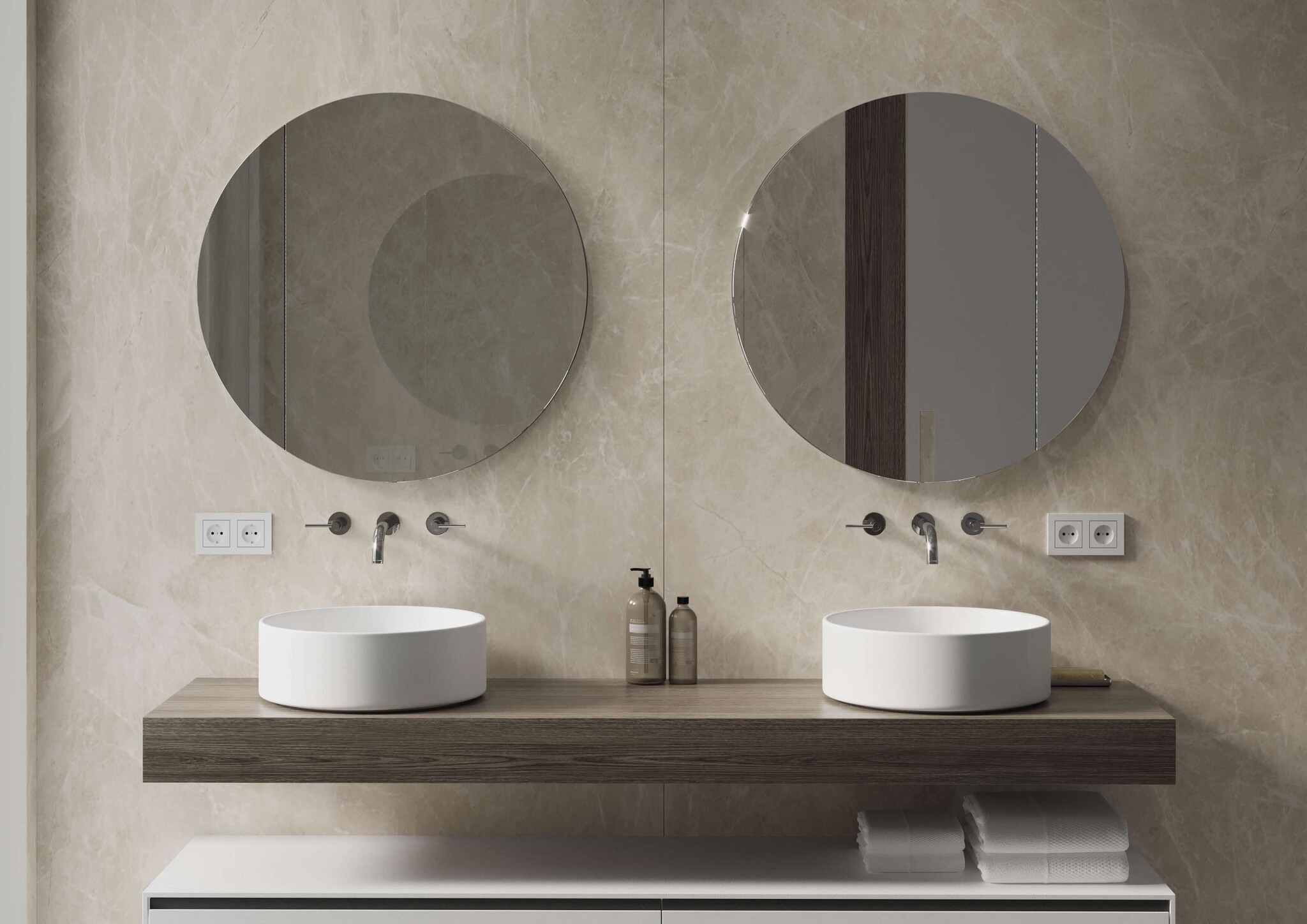 De Martens Design Calvo Spiegel van 80 cm combineert stijl en gebruiksgemak. Het ronde ontwerp met aluminium omlijsting zorgt voor een strakke en eigentijdse uitstraling, terwijl de spiegel voldoende formaat biedt voor dagelijks gebruik in de badkamer of hal.