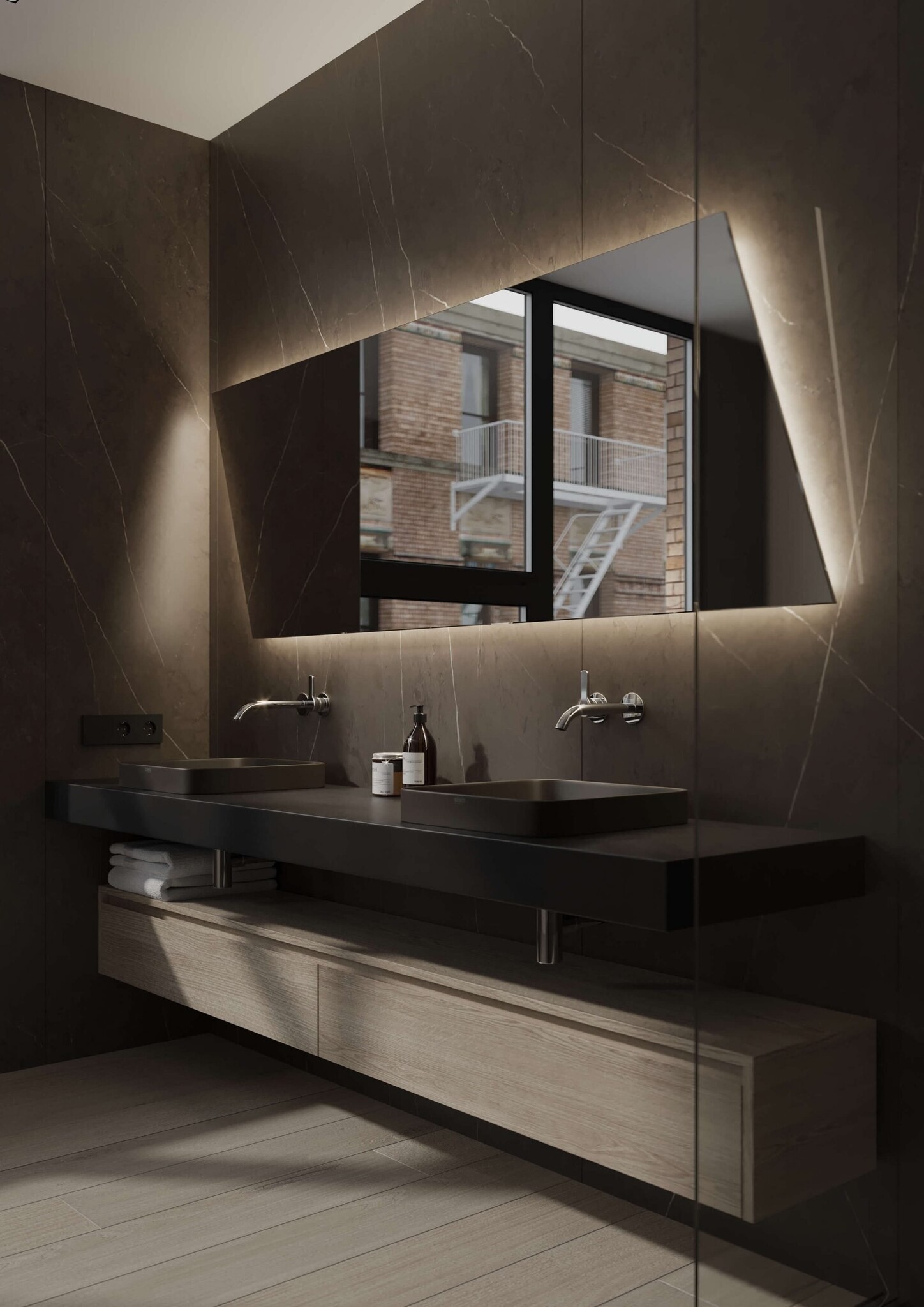 Ontdek de elegante Martens Design Ruiten Spiegel uit de New York Serie. Met een diameter van 140 cm en indirecte verlichting, brengt deze spiegel luxe en comfort in elke badkamer.
