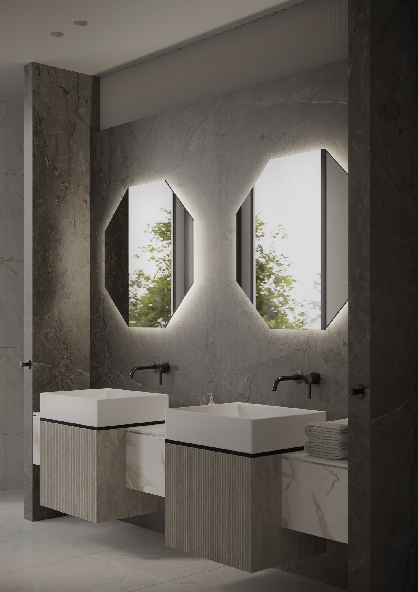 Martens & Meijer Spiegel Hexagon met Verlichting & Verwarming - Stockholm - 100 cm