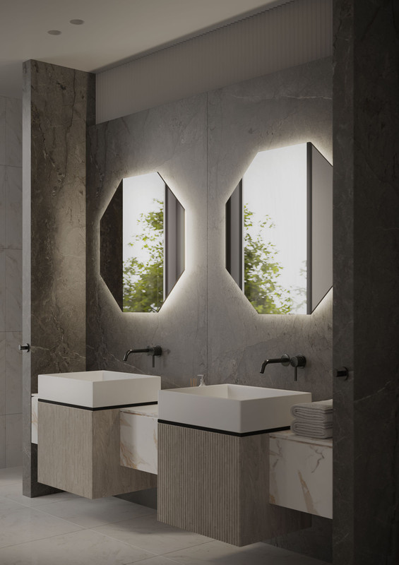 Martens Design Spiegel Hexagon met Verlichting & Verwarming - Stockholm - 80 cm