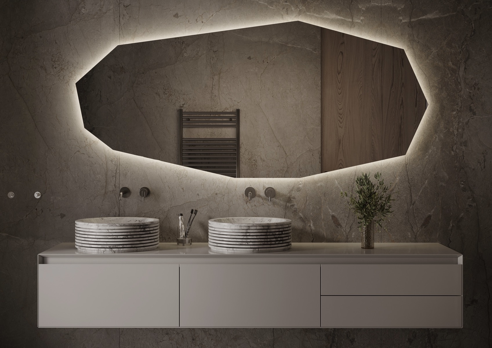 Martens & Meijer spiegel organisch gevormd met verlichting en verwarming Oslo | 180x90 cm