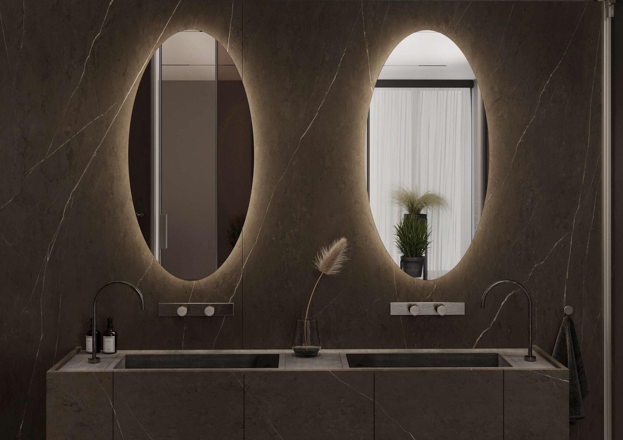 Welkom bij Martens Design, waar onze luxe spiegels een statement maken in jouw huis! Deze ovale spiegel van 70x140 cm uit de Elipse Serie heeft ingebouwde LED-verlichting en spiegelverwarming. Het elegante ontwerp voegt een vleugje luxe toe aan je dagelijkse routine en past perfect in elke badkamerstijl.