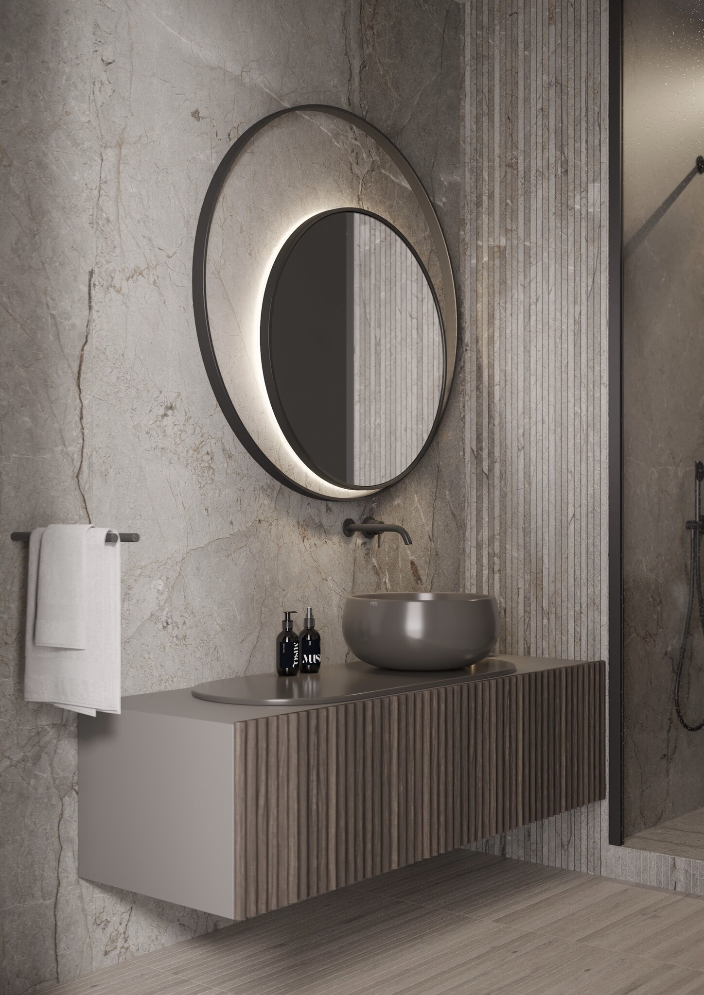 Een ronde spiegel van 120 cm met een elegant geborsteld messing frame, voorzien van LED-verlichting en spiegelverwarming. Deze spiegel combineert design en gebruiksgemak en past perfect in klassieke n moderne badkamers. Dankzij het anti-condenssysteem heb je altijd helder zicht.