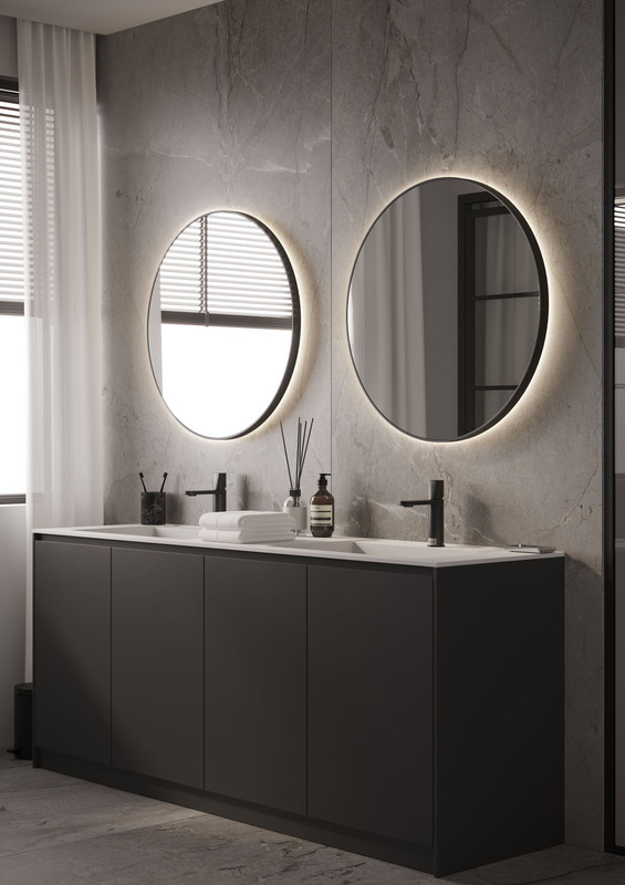 Offerte aanvraag voor Martens & Meijer spiegel rond met verlichting en verwarming Toronto | Mat zwart | 80 cm