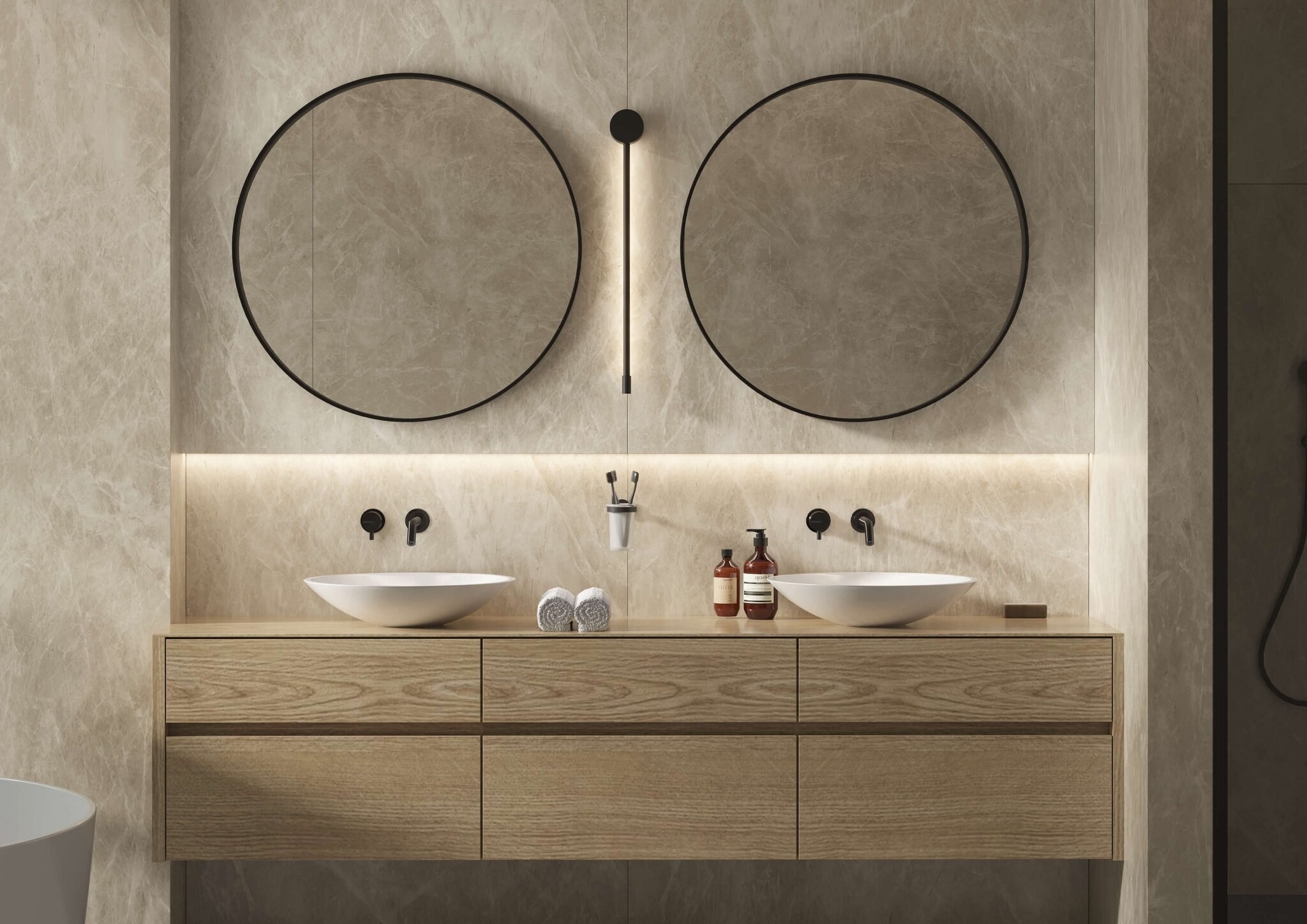 Verlicht elk moment met stijl met de Martens Design Spiegel. Deze prachtige ronde spiegel van 80 cm in mat zwart voegt luxe toe aan elke badkamer.