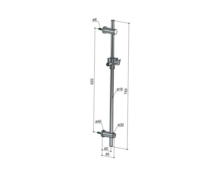 Met de Hotbath Mate glijstang 301 geborsteld nikkel voeg je een vleugje stijl en functionaliteit toe aan je badkamer. Deze glijstang heeft een diameter van 1.8 cm en een lengte van 75.5 cm, waardoor het de perfecte keuze is voor een comfortabele douche-ervaring.