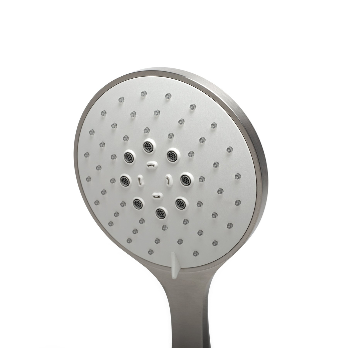 De Hotbath Mate handdouche is een veelzijdige handdouche met een diameter van 13 cm en een prachtige Geborsteld nikkel afwerking. Deze handdouche biedt u de mogelijkheid om te kiezen uit 3 verschillende standen: Rainy, Airy en Massage. Zo kunt u uw douche-ervaring aanpassen aan uw persoonlijke voorkeur en genieten van een ontspannende en verfrissende douche.