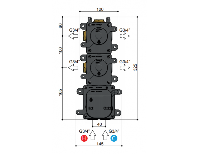 Offerte aanvraag voor HotBath Mate High Flow inbouwdeel met 2 stopkranen MHF002